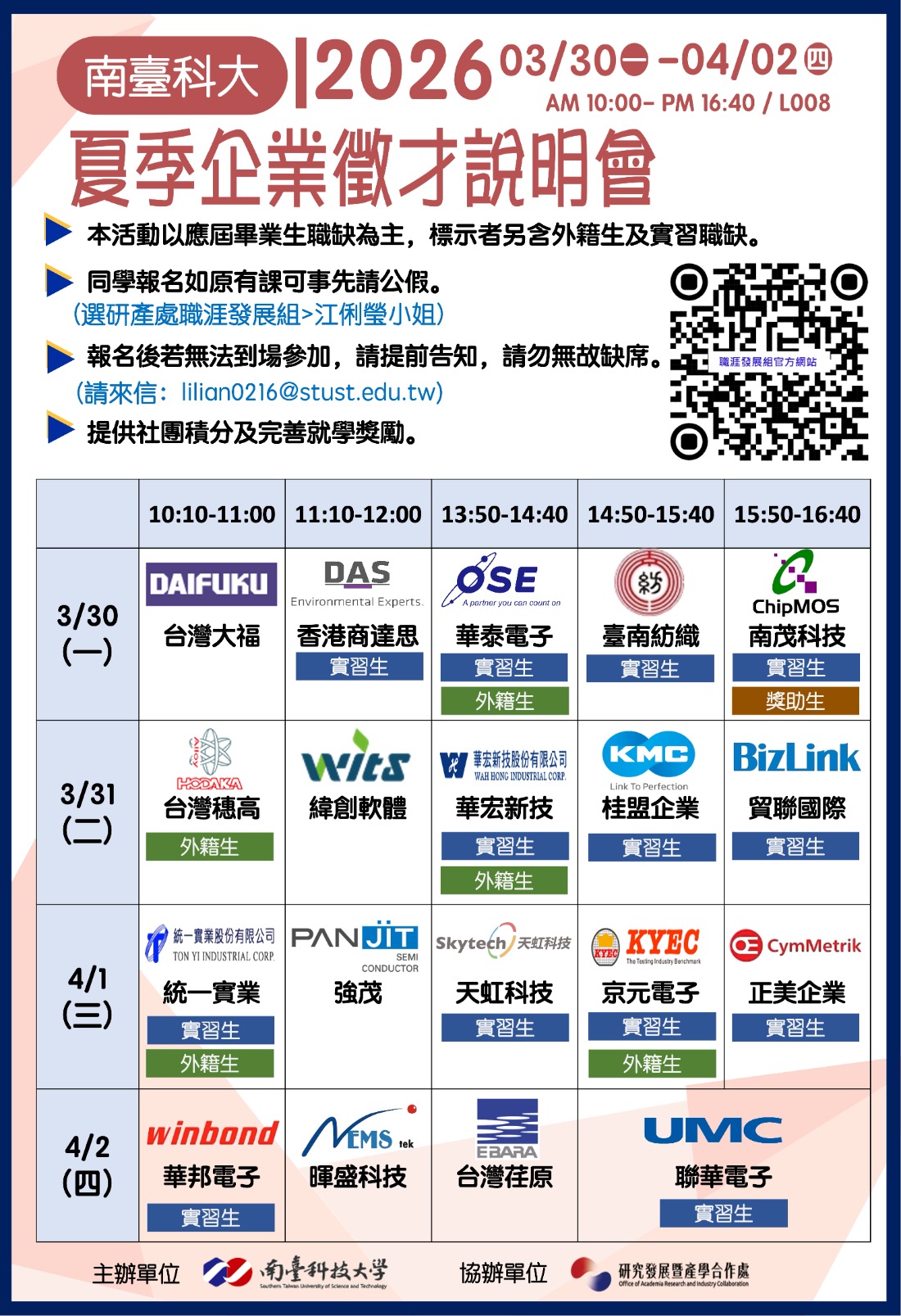 3/31(二)|多元職涯整合日(地點:L008)